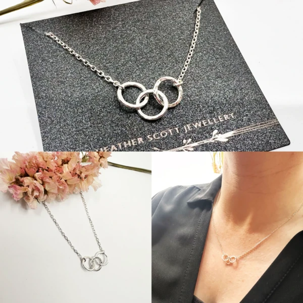 Infinity circles necklace: This pair of silver earrings would be a perfect match for this necklace…https://heatherscottjewellery.co.uk/product/circle-halo-studs/